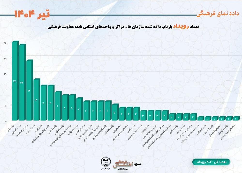 تعداد رویدادهای بازتاب داده شده سازمان ها ، مراکز و واحدهای استانی تابعه معاونت فرهنگی جهاددانشگاهی تیر ۱۴۰۴