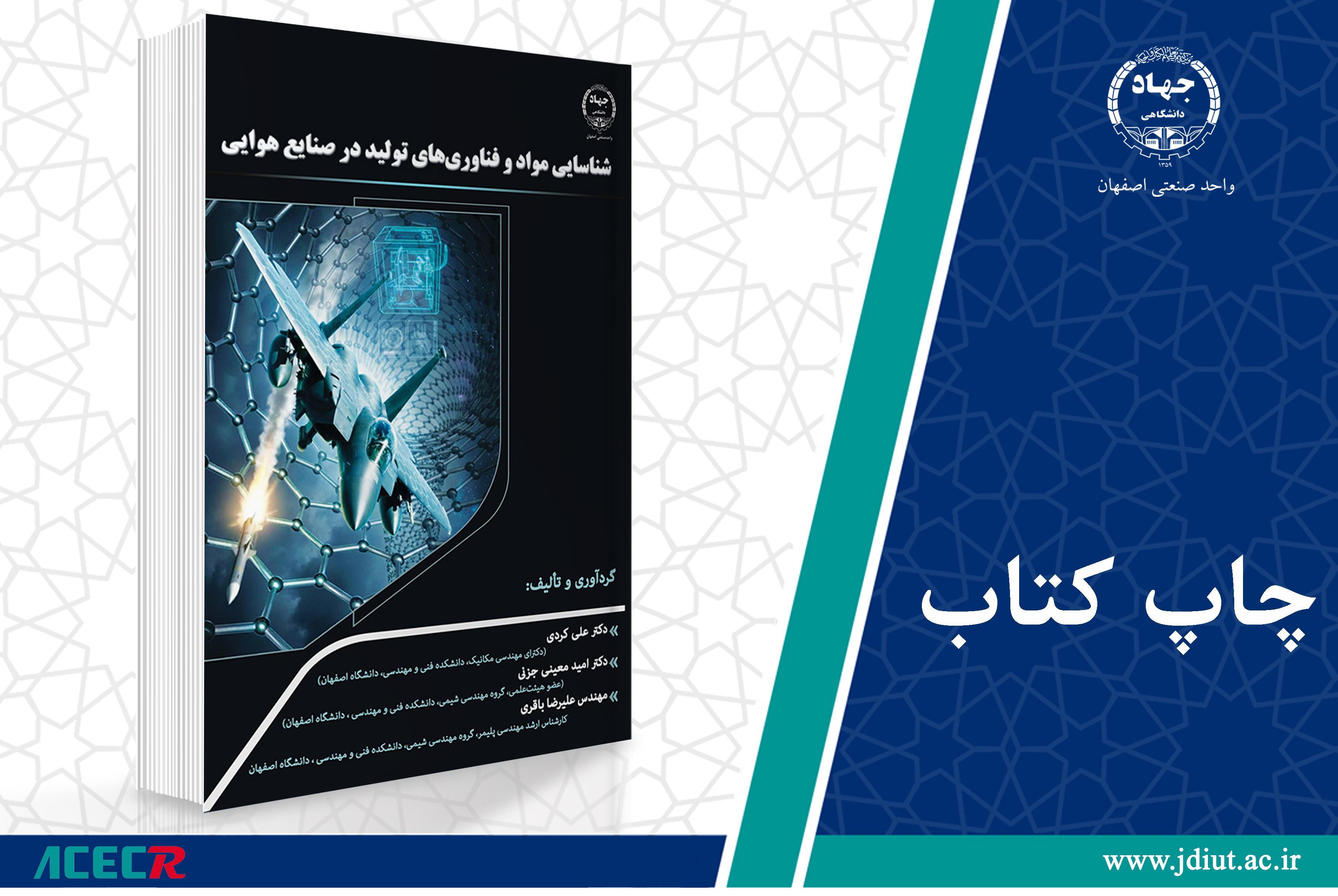 به گزارش روابط عمومی جهاددانشگاهی واحد صنعتی اصفهان، کتاب «شناسایی مواد و فناوریهای تولید در صنایع هوایی» گردآوری و تألیف: دکتر علی کردی ،دکتر امید معینی جزنی (عضو هیئتعلمی، گروه مهندسی شیمی دانشگاه اصفهان)، مهندس علیرضا باقری، دارای 573 صفحه، نه فصل، در قطع وزیری چاپ و راهی بازار کتاب شد.